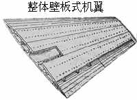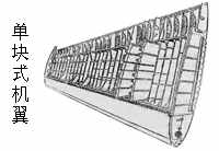 單塊式機(jī)翼:隨著飛行速度的進(jìn)一步增大,為保持機(jī)翼有足夠的局部剛度和扭轉(zhuǎn)剛度,需要加厚蒙皮并增多桁條。這樣,由厚蒙皮和桁條組成的壁板已經(jīng)能夠承受大部分彎矩,因而梁的凸緣就可以減弱,直至變?yōu)榭v檣,于是就發(fā)展成為了沒有翼梁的單塊式機(jī)翼。單塊式機(jī)翼的維形構(gòu)件和受力構(gòu)件已經(jīng)完全合并。