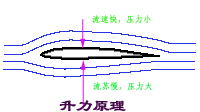 看了前面的文章,大家應該已經(jīng)知道飛機是如何飛上天的了。飛機的升空是借助于機翼產(chǎn)生的升力,如圖,由于機翼的下表面較平坦,上表面較突出,流過的機翼的上表面的空氣流速就要比流經(jīng)下表面的流速快,根據(jù)伯努利定理,上表面的壓力就要小于下表面,這個壓力差就是飛機的升力來源。