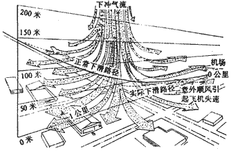 為什么低空風(fēng)切變會有如此的危害性呢?這是由風(fēng)切變的本身特性造成的。以危害性最大的微下沖氣流為例,它是以垂直風(fēng)切變?yōu)橹饕卣鞯木C合風(fēng)切變區(qū)。由于在水平方向垂直運動的氣流存在很大的速度梯度,也就是說垂直運動的風(fēng)速會出現(xiàn)突然的加劇,就產(chǎn)生了特別強的下降氣流,被稱為微下沖氣流。這個強烈的下降氣流存在一個有限的區(qū)域內(nèi),并且與地面撞擊后轉(zhuǎn)向與地面平行而變成為水平風(fēng),風(fēng)向以撞擊點為圓心四面發(fā)散,所以在一個更大一些的區(qū)域內(nèi),又形成了水平風(fēng)切變。如果飛機在起飛和降落階段進入這個區(qū)域,就有可能造成失事。比如,當(dāng)飛機著陸時,下滑通道正好通過微下沖氣流,那么飛機會突然的非正常下降,偏離原有的下滑軌跡,有可能高度過低造成危險。當(dāng)飛機飛出微下沖氣流后,又進入了順風(fēng)氣流,使飛機與氣流的相對速度突然降低,由于飛機在著陸過程中本來就在不斷減速,我們知道飛機的飛行速度必須大于最小速度才能不失速,突然的減速就很可能使飛機進入失速狀態(tài),飛行姿態(tài)不可控,而在如此低的高度和速度下,根本不可能留給飛行員空間和時間來恢復(fù)控制,從而造成飛行事故。