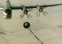具體加油過程是:空中加油時,加油機內(nèi)的工作人員將軟管放出機外,軟管下的黃褐色信號燈閃亮。受油機的駕駛員收到準備妥當?shù)男盘柡,便整好自己飛機的位置將受油管伸入錐套,只要自鎖機構(gòu)鎖緊之后,燃油便自動流向受油機。由于受油機于加油機的速度差和高度差都有嚴格的規(guī)定,因此受油機駕駛員的動作必須十分穩(wěn)定和準確。如果一切正常,黃褐色信號燈自動熄滅,遇到緊急情況,紅色警告燈閃亮,告訴受油機駕駛員進行調(diào)整。加油結(jié)束后,受油機減速,當加油機和受油機的速度差達到一定值時,在一定的張力下,輸油軟管和受油管就會自動脫開,燃油自動關(guān)斷,然后受油機和加油機的距離和高度差逐漸拉大,受油機到達安全距離后再向一側(cè)推出,加油機則可繼續(xù)給下一架飛機加油或者收回加油軟管。