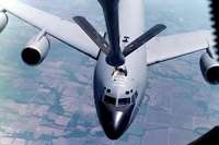 伸縮管式空中加油設備亦稱“飛桿”加油裝置,也叫做硬式加油設備(與軟管式加油相對應),是美國波音飛機公司研制成功的,緊隨英國的軟管式加油設備之后,于1949年底投入使用。該設備的主體是一根由兩截組成的剛性伸縮管,安裝在加油機的尾部,平時收入機內,進行空中加油時將其伸出。伸縮管的中間裝有V形舵面,后緣之間的夾角約130度左右,V形舵面的作用類似于飛機的升降舵,操縱它可以使伸縮管在一定范圍內運動。例如美國KC-135加油機上的伸縮管式空中加油設備,其內管的伸縮距離為6米,上下活動范圍為54度,橫向活動范圍為34度,并且由專門的加油人員進行操作。