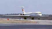 1967年9月 15日,新的大型旅客機伊爾-62投入航班飛行,這是伊柳辛設(shè)計局最成功的設(shè)計成果之一,它可以與當(dāng)時美國的波音707和DC-8相媲美。該機裝有四臺渦輪風(fēng)扇發(fā)動機,經(jīng)濟巡航速度為820~900公里/小時,最大航程為9820公里,最大載客量186人。