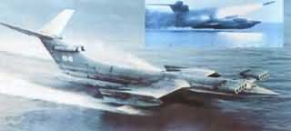 “鷂”式地效飛機原型機80年代初開始研制,89年通過國家試驗,總設(shè)計師為中央水翼艇設(shè)計局的索科洛夫,由下諾夫哥羅德造船廠生產(chǎn)。該型機長73.8米,寬44米,高17米,速度55O公里/小時,航程5000公里,排水量37O~440噸,裝三套KT-152二聯(lián)裝“白嶺”反艦導(dǎo)彈發(fā)射裝置,導(dǎo)彈的發(fā)射由機載火控雷達(dá)控制。