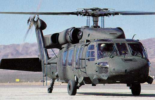 “黑鷹”的基本型裝兩臺(tái)通用電器公司的T700-GE-700渦輪軸發(fā)動(dòng)機(jī),并列安裝于機(jī)身頂部的兩肩位置,單臺(tái)最大功率1564馬力。駕駛艙設(shè)正(右側(cè))副(左側(cè))駕駛員位置,載員艙可容納一名隨機(jī)機(jī)械師和 l1名全副武裝的士兵及相應(yīng)裝備。機(jī)身兩側(cè)舷窗內(nèi)的架子上可裝兩挺 M60機(jī)槍,在必要時(shí)可提供火力支援。兩扇推拉式艙門開關(guān)方便,可保證載員迅速進(jìn)出。