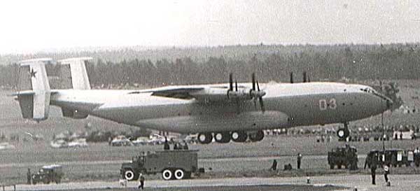 動力裝置為四臺庫茲涅佐夫HK-12MA渦槳發(fā)動機(jī),功率4×15,000軸馬力,每臺發(fā)動機(jī)驅(qū)動一對直徑為6.4米的四葉同軸對轉(zhuǎn)螺旋槳,著陸時可反槳,縮短著陸距離。