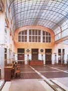 瓦格納設計的維也納郵政儲金銀行(Post Office Saving Bank,Vienna,1904-1906)高六層,立面對稱,墻面劃分嚴整,仍然帶有文藝復興建筑的敦厚風貌,但細部處理新穎,表層的大理石貼面細巧光滑,用鋁制螺栓固定,螺帽暴露在墻面上,產生裝飾效果。