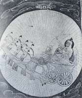 原始人對上和下的理解,最初可能也與太陽的起落有關(guān),人們首先把太陽想象成為一只可以飛越空中的鳥,如遠古中國人想象太陽為三足烏。然后,原始人又從直接的觀察中,想象其常常棲息在樹梢上。中國神話中的神樹——東方的扶桑與西方的若木,就是為太陽鳥起落之時棲息用的。古埃及則建造了高聳的方尖碑,供太陽臨時駐足用。漸漸地人們又把太陽的行為擬人化,想象著太陽是乘著馬車或坐著小舟跨越天空和穿越地下的。埃及古老建筑金字塔的葬儀就是太陽這種由上界至下界巡游的過程的摹仿。