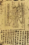 五代時(shí)期,佛教有了一定的發(fā)展,在一些割據(jù)的國家,由于統(tǒng)治者的特別提倡,佛教非常興盛。據(jù)記載,后周顯德二年(公元955年)時(shí),有寺院二千九百六十四所,僧尼六萬一千二百人,說明當(dāng)時(shí)佛教的規(guī)模是很大的。而當(dāng)時(shí)的佛像佛經(jīng)印刷,也遍及南北各地,流傳下來的五代佛教印刷品也較其他印刷品多。在敦煌石室,發(fā)現(xiàn)了以下幾件五代印刷品。