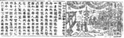 1924年杭州雷峰塔倒塌,在有孔的塔磚內(nèi)再次發(fā)現(xiàn)《寶篋印經(jīng)》。經(jīng)卷有題記“天下兵馬大元帥吳越國王造此經(jīng)八萬四千卷,舍入西關(guān)磚塔,永充供養(yǎng)。乙亥八月日記”。乙亥是宋太宗開寶八年(975年)。同時(shí)還發(fā)現(xiàn)了藏在磚塔內(nèi)的塔圖印本。塔圖全長1米,每層畫一塔,四塔連接,畫有佛經(jīng)故事。記文中有丙子記年,為宋太宗太平興國元年(976年)。圖經(jīng)刻印比佛經(jīng)晚一年。論時(shí)代已入宋朝,其時(shí)吳越國并未納土,仍應(yīng)列為五代時(shí)期的印刷品。