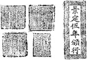 在1985年年底舉辦的"安徽省文物珍品展覽會(huì)"上,有一套宋代"金銀見(jiàn)錢關(guān)子"印版,引起行家們的廣泛重視。這套印版一共八塊,是安徽省東至縣的廢品收購(gòu)站從農(nóng)民手中按廢品收購(gòu)來(lái)的。東至縣地方志辦公室聞?dòng)嵑,將此套印版從廢品站價(jià)撥過(guò)來(lái),并轉(zhuǎn)給了縣文物部門。安徽省博物館盧茂村先生向余詳細(xì)地介紹了這套印版的發(fā)現(xiàn)、實(shí)物規(guī)格及鑒定情況。