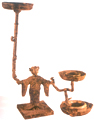 ,有鼎、豆、壺、盤、尊等,樂器有編鐘,生活用具有帶勾和鏡等。從各地出土的銅器及山西侯馬鑄銅遺址出土的陶范考察,當(dāng)時(shí)除采用渾鑄法外,已廣泛采用分鑄技術(shù),即將器物的耳、足、環(huán)等附件鑄好之后,嵌在主體范中,然后灌注銅液,讓器身和附件熔鑄在一起。也有先將主體和附件分別鑄好,然后再用合金焊接。春秋中期以后,還出現(xiàn)失蠟法溶模鑄造技術(shù),如河南淅川下寺楚墓出土的銅禁、湖北隨縣曾侯乙墓出土的銅尊盤等,上下多層花紋皆纖細(xì)透空,即以這種技法鑄成。但一般工具和兵器仍用合范鑄造,而且一范多用。銅器花紋的制作已采用花版捺印的新技術(shù),其它如鑲嵌、鎏金、金銀錯(cuò)、細(xì)線雕等新工藝,使東周銅器的裝飾花紋富麗堂皇。