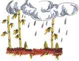 我國南方盛產(chǎn)竹林,個別地區(qū)竹林茂盛,綿延數(shù)百公里,成為竹海,雨中竹葉清翠欲滴,成為盛景。但酸雨使竹林泛黃,竹葉稀稀落落。