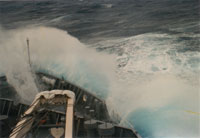 巨浪把海水卷進(jìn)前甲板