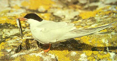 北極海燕正在用一條魚向?qū)Ψ角髳?/p>