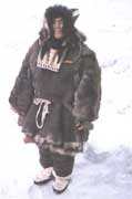 愛斯基摩婦女把動(dòng)物的腸子加工成縫衣服的線,如北極馴鹿的腸子是哺乳動(dòng)物中最長(zhǎng)的,有40多米長(zhǎng),海象的腸子也有30多米長(zhǎng)。她們還用動(dòng)物的骨頭和牙齒做成縫衣針。大多數(shù)地區(qū)愛斯基摩人通常外出穿戴的衣服從上至下為:帶帽子的防風(fēng)上衣、褲子、靴子,此外必須戴上連指手套,這種手套是拇指和其他四指分開的。男女服裝的樣式基本差不多,只是裁剪和裝飾物不同。