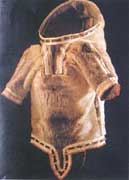 有的地區(qū),婦女穿的褲子和靴子連成一體。兒童的衣服多是從頭到腳連成一體,只在臀部部位開一個(gè)洞,平時(shí)這部分自然閉合,不用擔(dān)心凍壞孩子。愛斯基摩人的衣服十分巧妙地運(yùn)用了空氣的物理性質(zhì)――熱空氣不會(huì)向下散逸的原理。在北極地區(qū)生活的其他民族也有類似于愛斯基摩人的衣服,但是沒有愛斯基摩人的保暖,且便于活動(dòng)。愛斯基摩人通常上身只穿一件厚厚的皮祆,不穿內(nèi)衣,皮襖很輕,下面雖然敞著口,但暖空氣向上升,所以不會(huì)從下面散失。皮襖帶有連衣帽,系得緊緊的,以防熱量從上面散失。如果感到很熱,只需稍稍松開帽子,讓暖氣流走。連衣帽的邊緣鑲有狼灌皮或狼皮,因?yàn)檫@兩種皮與其他毛皮不同,所以人呼出的水氣不會(huì)在上面凝結(jié)成冰。外出打獵或活動(dòng)不多時(shí),愛斯基摩人再穿上寬大的風(fēng)雪外衣,這種外衣的毛皮朝外,主要功能是防風(fēng)雪(圖28:身穿馴鹿,狐貍,海豹和北極熊皮做的大衣的愛斯基摩人)。