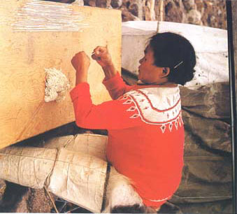 這位愛斯基摩婦女正在曬角鯨的筋,它是縫制皮靴,衣服和船面的最佳材料