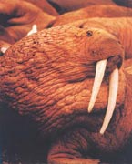 海象用須作濾泥器,一餐可以從海底吸食數(shù)以百計(jì)的水生小貝殼類動(dòng)物。海象的群居習(xí)性使得人類易于捕殺它們。如果有同類受傷,其他海象必定前去幫助,不會(huì)為自身的安全考慮,這樣使得獵捕的人可整群地加以捕殺。北極海象曾經(jīng)一度廣泛活動(dòng)于北極圈內(nèi),但現(xiàn)在僅存于格陵蘭島北部、白令海以及北冰洋中的一些范圍不大的區(qū)域里。