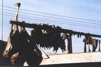 將獵物的肉掛在房頂上,以防狗和北極熊偷吃