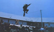 阿拉斯加最有特色的運(yùn)動(dòng)是“跳毯子”,這種游戲多在夏季玩。一個(gè)人站在一張由幾張海象皮縫制的大毯子上面,當(dāng)毯子猛地被繃緊時(shí),站在上面的人便飛入空中。通常跳毯子高手都是年輕婦女,能騰空10米多,并且在空中連翻幾個(gè)筋斗和做其他花樣動(dòng)作。