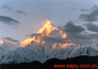 從扎曲仰望加拉白壘頂峰金色的晨光