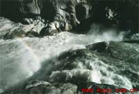 應(yīng)該指出,現(xiàn)在這段峽谷洪枯水位高差達(dá)21米之多,在洪水期和枯水期,瀑布表現(xiàn)出的規(guī)模和形態(tài)也會(huì)有很大的差異。1998年考察和測量到的特征數(shù)據(jù),都是11月份枯水期的結(jié)果,試想在水位暴漲20余米的洪水期,峽谷河床瀑布又能出現(xiàn)什么樣的景觀呢?!這也應(yīng)當(dāng)是屬于峽谷河床瀑布多變化性的特點(diǎn)范圍之一。