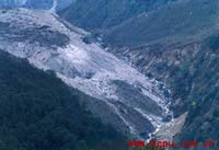 在海洋性氣候控制下的水汽通道范圍內(nèi),南峰亦成為現(xiàn)代冰川發(fā)育的中心。南峰東南坡為迎風(fēng)坡,發(fā)育有三條大的山谷冰川,如央朗藏布冰川,白弄巴冰川,它們長(zhǎng)達(dá)約10公里,延伸入海拔3000多米的針闊混交林中;南峰北坡和西坡各有一條山谷冰川,西坡的則隆弄冰川長(zhǎng)約10公里左右,它是以分段躍動(dòng)作超長(zhǎng)運(yùn)動(dòng)的躍動(dòng)冰川,經(jīng)10多年的前后觀測(cè)對(duì)比,該冰川正在快速的消融變動(dòng)之中。顯然以南峰為中心發(fā)育的冰川呈不均勻、不對(duì)稱的掌狀分布為特點(diǎn)。峽谷北側(cè)的加拉白壘峰也是冰川發(fā)育的中心,東坡發(fā)育一條大型山谷冰川,叫列曲冰川,這里雪線為4700米,冰川末端海拔2850米,冰川補(bǔ)給豐富,消融區(qū)中下部表磧覆蓋,動(dòng)態(tài)變化比較穩(wěn)定。