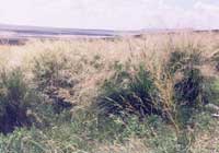 在我國北方草原區(qū),在局部低地或者相對(duì)封閉的丘陵間洼地,或者湖淀周圍的鹽堿地上,或 者山地丘陵基部,你經(jīng)?梢园l(fā)現(xiàn)一叢叢生長(zhǎng)的高大的禾本科植物,這就是芨芨草。芨芨草為什么會(huì)生長(zhǎng)在這些地方?因這些地方一般相對(duì)低洼,土壤水分狀況較好,芨芨草可以適應(yīng),如果將芨芨草種到干旱的高地就不會(huì)生長(zhǎng)而最終死亡。因而芨芨草被稱為土壤水分的監(jiān)測(cè)員,可在一定程度上預(yù)報(bào)土壤水分狀況。