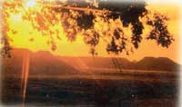 觀平頂山景色,以日落時(shí)為最佳,故稱(chēng)之為平臺(tái)落日。夕陽(yáng)西墜,落日的余輝為平頂山抺上一層胭脂紅,使群山顯得格外嫵媚,游客能清晰地觀賞到太陽(yáng)漫漫沉入草原大地的景色。晚霞中,山凹里人家炊煙裊裊,更令游人思緒萬(wàn)千。