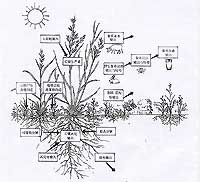 從圖可以看出,草原生態(tài)系統(tǒng)的生產者不是高大的喬木,而是禾本科、菊科植物為主的草本植物,其地上部分現存量較低,而地下部分有發(fā)達的根系,且以細根為主。地下部分現存量是地上部分現存量的5倍以上。草原生態(tài)系統(tǒng)的消費者在野生動物中以嚙齒動物為主,草原是嚙齒動物的天堂。而分解者以真菌、細菌、放線菌為主。草原生態(tài)系統(tǒng)的非生物環(huán)境也很具特色,一般降水量較低,在我國都低于450毫米。草原生態(tài)系統(tǒng)不僅是重要的畜牧業(yè)生產基地,而且是重要的生態(tài)屏障。