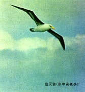 漫游信天翁被航海家譽為吉祥之鳥和導(dǎo)航之鳥。船只航行在咆哮的南大洋上時,通常可以看到它們不辭勞苦,飛奔而至,盤旋翱翔,給船只領(lǐng)航。我國科學(xué)家在前往南極洲的途中,就遇見過漫游信天翁,起初人們誤認(rèn)為它是為了捕食船只擊傷的魚蝦。后來發(fā)現(xiàn),它并不尾隨在船尾,也沒有表現(xiàn)任何捕食的行為,而是一個勁地盤旋翱翔,時而高,時而低,時而遠(yuǎn),時而近…,船員們說這是信天翁在“導(dǎo)航”,低空盤旋意味著前面有冰山或浮冰群,勇往直前的高飛則暗示著前面是開闊的海洋。但是,船的鳥類學(xué)家卻不同意這種說法,他們認(rèn)為導(dǎo)航是假,好奇是真。信天翁從來沒有或很少見到過人和船,出于一種好奇和本能,不斷地追逐船只。