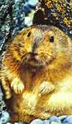 旅鼠,哺乳動物,常年居住北極,體形橢圓,四肢短小,比普通老鼠要小一些,最大可長到15厘米,尾巴粗短,耳朵很小,兩眼閃著膽怯的光芒,但當(dāng)被逼得走頭無路時,它也會勃然大怒,奮力反擊。愛斯基摩人稱其為來自天空的動物,斯堪的納維亞人稱之為“天鼠”。這是因為在特定的年頭,它們的數(shù)量會大增,就象天兵天將,突然降臨。