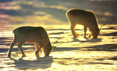 馴鹿從雪下覓食