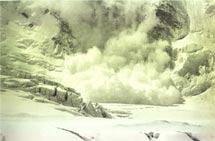 1966年l2月,天山西部發(fā)生了一次大雪崩。中國地理學家為此曾經寫過一篇萬字以上的調查報告。報告里引用了大雪崩的目擊者的話: