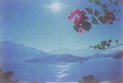 在祖國寶島——臺灣島的南投縣叢山中,在經(jīng)緯度N23°52′, E120°54′的位置分布著臺灣島上最大的湖泊——日月潭。潭中有一小島,猶如珠走玉盤,故名珠子嶼。相傳清代將帥丁汝霖領(lǐng)兵于此,見珠子嶼以北水域形似日輪,以南水域狀如新月,遂命名為日月潭。
