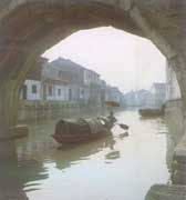 鑒湖一帶是典型的江南水鄉(xiāng)風(fēng)光。湖上橋堤相連,漁舟時現(xiàn),青山隱隱,綠水迢迢。王羲之詩: