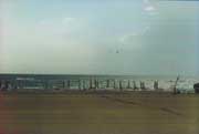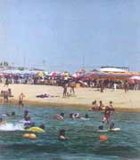 金沙灘北望高山巍峨,冰盔雪甲,南眺沙山起伏,沙水共處,神秘莫測(cè)。悠悠碧水、點(diǎn)點(diǎn)漁帆,平濤綠浪,水鳥飛翔,好一副水澤風(fēng)景畫。