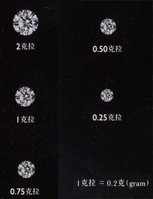 克拉與鉆石大小之相約對照