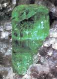 祖母綠是一種含鈹鋁的硅酸鹽,其分子式為Be3Al2[Si6O18],屬于綠柱石家族中最“高貴”的一員。屬六方晶系。晶體單形為六方柱、六方雙錐,多呈長(zhǎng)方柱狀。集合體呈粒狀、塊狀等。翠綠色,玻璃光澤,透明至半透明。折光率1.564-1.602,雙折射率0.005-0.009,多色性不明顯。非均質(zhì)體。硬度7.5,密度2.63-2.90 克/立方厘米。解理不完全,貝殼狀斷口。具脆性。X射線照射下,祖母綠發(fā)很弱的純紅色熒光。