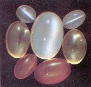 月光石(Moon Stone),又稱月長石,是具有光學效應最有價值的寶石。無色或乳白色,優(yōu)質(zhì)者往往呈半透明狀,具有淡藍色的暈色,如同朦朧的月光,是長石類寶石的珍品。古時候,世界上很多國家的人們就認為佩戴月光石能給人帶來好運,并能喚醒心上人的溫柔感情,給人以力量,憧憬美好的未來。在現(xiàn)代,許多國家把月光石與珍珠、變石一起定為“六月誕生石”,象征健康、富貴和長壽。加工粗糙形狀切磨不好的月光石,價值大大降低。佩戴月光石應注意具有最佳的光學效應。