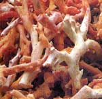 珊瑚是一種海生圓筒狀腔腸動(dòng)物,名叫“珊瑚蟲(chóng)”。在白色幼蟲(chóng)階段便自動(dòng)固定在先輩珊瑚的石灰質(zhì)遺骨堆上。珊瑚依靠自己的觸手來(lái)捕捉食物,并分泌出一種石灰質(zhì)(礦物成分為方解石)來(lái)建造自己的軀殼。珊瑚在生長(zhǎng)過(guò)程中,為了能更多地捕捉食物和吸收陽(yáng)光,除向上生長(zhǎng)外,還向前后、左右擴(kuò)展,形成在三度空間似樹(shù)枝狀的生物群體。隨意取出一束即婀娜多姿,美麗動(dòng)人,是天然藝術(shù)品。