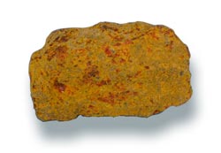 雄黃的化學(xué)成分是AsS,晶體屬單斜晶系的硫化物礦物,又名雞冠石。單晶體通常細(xì)小,呈短柱狀,少見,一般以粒狀或塊狀集合體產(chǎn)出。長期暴露于日光下會(huì)變?yōu)榉勰。板狀解理良好。雄黃常呈橘紅色,條痕呈淡橘紅色,與辰砂相似,但辰砂的條痕顏色鮮紅,呈油脂光澤。摩氏硬度低,為1.5-2,比重3.48。