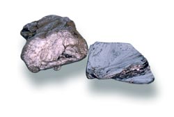 輝鉬礦化學(xué)成分為MoS2,晶體有不同類型,分屬六方和三方晶系的硫化物礦物。呈鉛灰色,表面上看像鉛,條痕為亮鉛灰色,強(qiáng)金屬光澤。通常呈葉片狀、鱗片狀集合體。一組極完全底面解理。摩氏硬度約為1-1.5,比重大,達(dá)5。薄片具撓性。在光薄片下,不透明,有白色到灰白色的強(qiáng)烈多色性和非均質(zhì)性。與石墨相似,但以其密度較大、光澤較強(qiáng)、顏色及條痕較淡與石墨相區(qū)別。