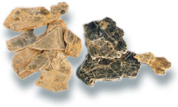 化學(xué)組成為Mg0-5(OH)4{Mg3[AlSi3O10](OH)2},晶體屬單斜晶系層狀結(jié)構(gòu)硅酸鹽礦物。因加熱時能迅速膨脹,彎曲呈水蛭狀而得名。集合體呈片狀、土狀或粉末狀。一般呈褐色、褐黃色或暗綠色,帶油脂的玻璃光澤。底面解理完全,解理片具撓性。摩氏硬度1.5-2.8,比重2.1-2.7。 蛭石通常由云母經(jīng)低溫?zé)嵋何g變或風(fēng)化而成。蛭石可用作建筑材料、油的吸附劑、消音材料等!