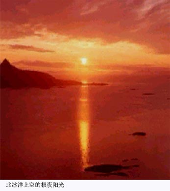 北冰洋上空的極夜陽光