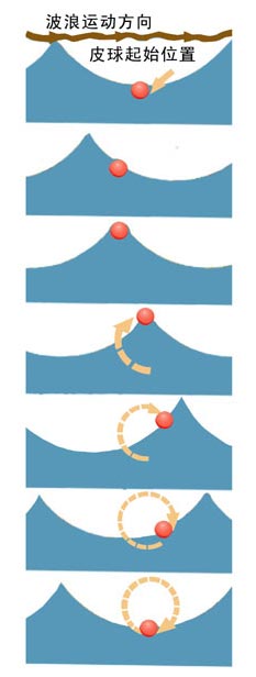 波形前進(jìn),皮球只是做了一個圓周運動。
