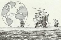 1492年8月3日,哥倫布受西班牙國王派遣,帶著給印度君主和中國皇帝的國書,率領(lǐng)三艘百十來噸的帆船,從西班牙巴羅斯港楊帆出大西洋,直向正西航去。經(jīng)七十晝夜的艱苦航行,1492年10月12日凌晨終于發(fā)現(xiàn)了陸地。哥倫布以為到達(dá)了印度。后來知道,哥倫布登上的這塊土地,屬于現(xiàn)在中美洲巴勒比海中的巴哈馬群島,他當(dāng)時為它命名為圣薩爾瓦多。