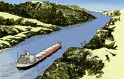 提到位于中東地區(qū)的埃及,你也許馬上會(huì)聯(lián)想到在這個(gè)文明古國(guó)里有著聞名世界的金字塔以及獅身人面像。是的,金字塔已不僅是埃及的驕傲和象征,也是聞名世界的古代文化遺產(chǎn)。不過(guò),在埃及還有一條與此相齊名的人工開鑿的運(yùn)河--蘇伊士運(yùn)河,也同樣是值得埃及人民驕傲與自豪的。這條位于埃及東北部,北起地中海邊上的塞德港、南至紅海蘇伊士灣的陶菲克港的人工運(yùn)河,全長(zhǎng)195千米(包括兩端伸人海中的航道),河面寬300~350米,平均水深20米,可通過(guò)150萬(wàn)噸的滿載貨船和30多萬(wàn)噸的空載貨船,平均過(guò)河時(shí)間為12~13個(gè)小時(shí)。