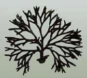 藻體深綠至黑綠色,海綿質(zhì),單細(xì)胞多核體,高10~30厘米。復(fù)叉狀分枝,