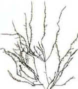 藻體暗紫紅色,叢生,軟骨質(zhì),高1.5~3厘米。藻體由匍匐和直立兩個部分組成。廣角分枝,枝呈絲狀,直徑400微米,互生或?qū)ι,有時同節(jié)有2~3個分枝。枝圓柱形,上部扁平,頂端尖細(xì)。囊果著生于分枝上。生長在中潮帶巖石上或石沼中。產(chǎn)于普陀山、大陳、南麂。我國沿海均有分布。